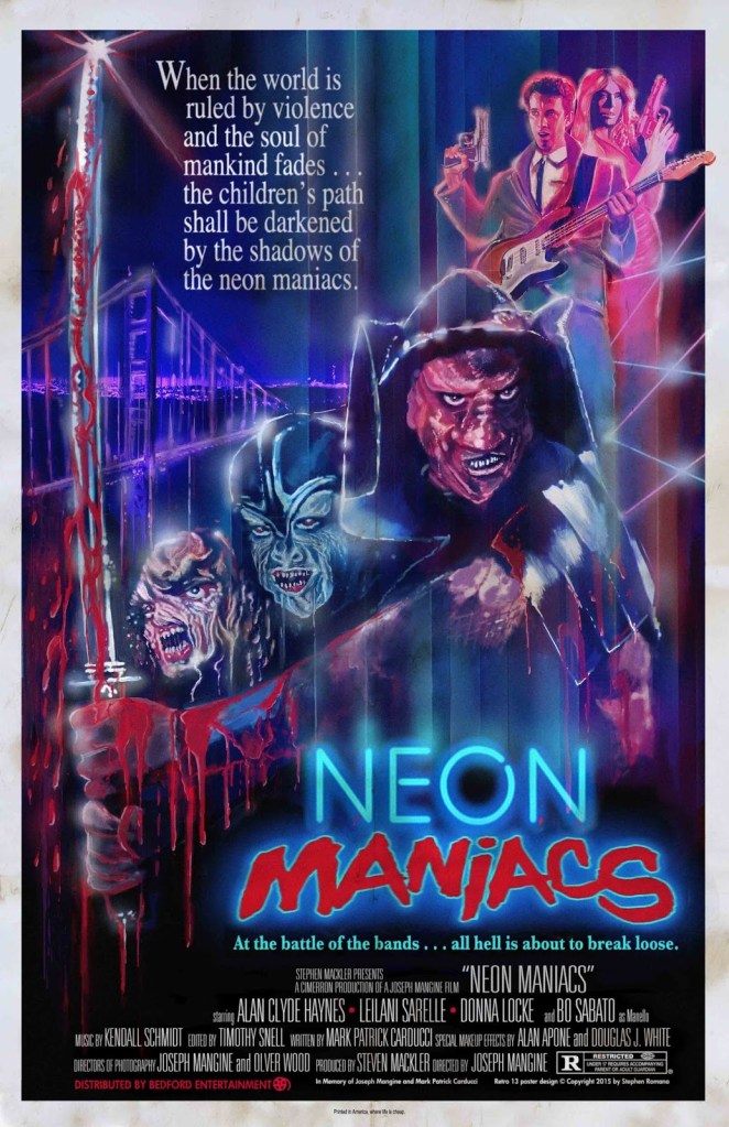 Neon Maniacs surprised me. It has pretty good special effects, some effectively atmospheric sequences (such as Locke traveling in the fog), memorable characters, decent deaths, and enjoyable music, all tied together with a would-be campy plot played generally straight. I will admit to being taken aback, but that was my mistake. A really enjoyable movie, despite the origins of the monsters never being made clear.