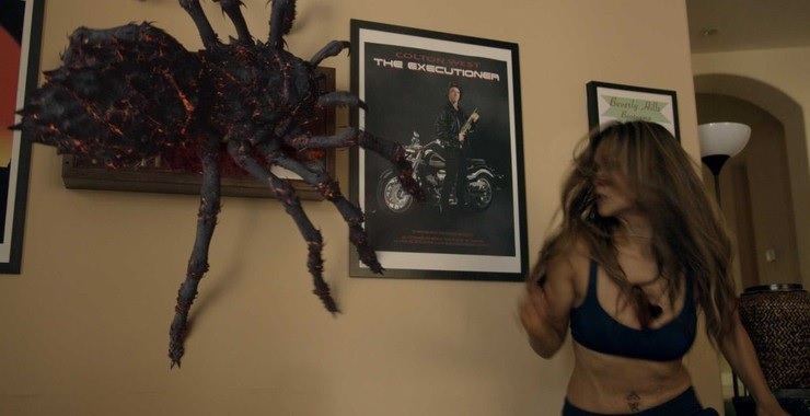 What makes this movie fun is the fact Guttenberg plays a washed-up action-hero, and there are quite a few references made to other films throughout Lavalantula that made me crack a grin (such as Raiders of the Lost Ark, Jurassic Park, and of course, 1997’s Volcano). There’s not really anything that special about the humor, but I had a good time with it.