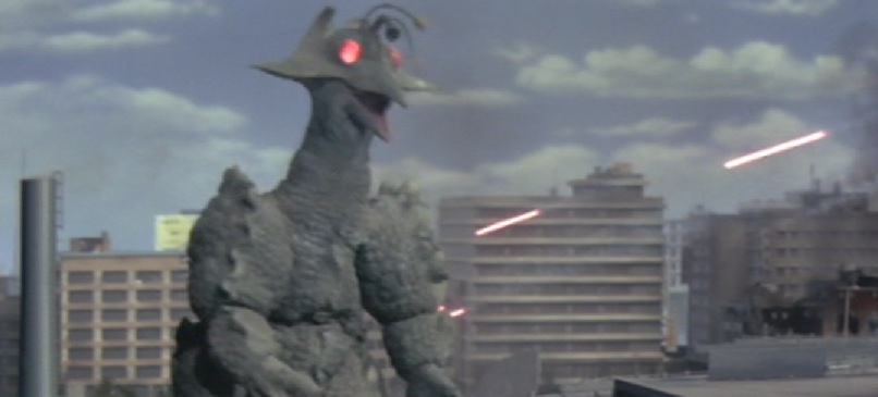 Few of these characters are really worth much. In his own way, I did sort of like Shun’ya Wazaki as the straight-laced captain, and the idea that both Itoko Harada and Peggy Neal’s characters wanted to jump his bones was fine (though the cat fight I was hoping for never happened), but it doesn’t much go anywhere aside from a scene in the finale that was somewhat laughable. Otherwise, the only character in the film worth watching this for was the monster, called Guilala, which was just an overly goofy-looking lizard thing with bouncing antennas.