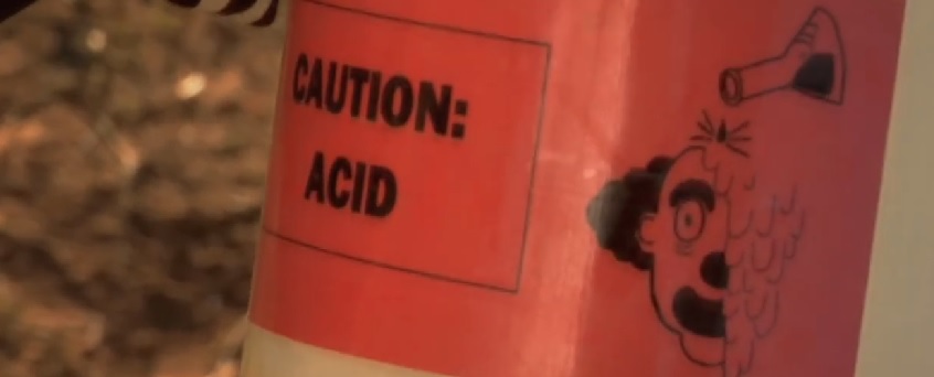 I’ll give it that the kills are generally decent. There’s a violent scalping, complete with brain matter (which pops up throughout the film, such as a scene in which someone’s head gets stomped on), there’s a pie in the face, and more importantly, a knife shoved through the pie afterwards. We have a guy falling into a hay baler, along with someone eating a pie that had a bomb in it (reminding me a bit of a kill from Funny Man). Perhaps my favorite was seltzer that’s been replaced with acid, so when it was sprayed in someone’s face, they did not have a good time.